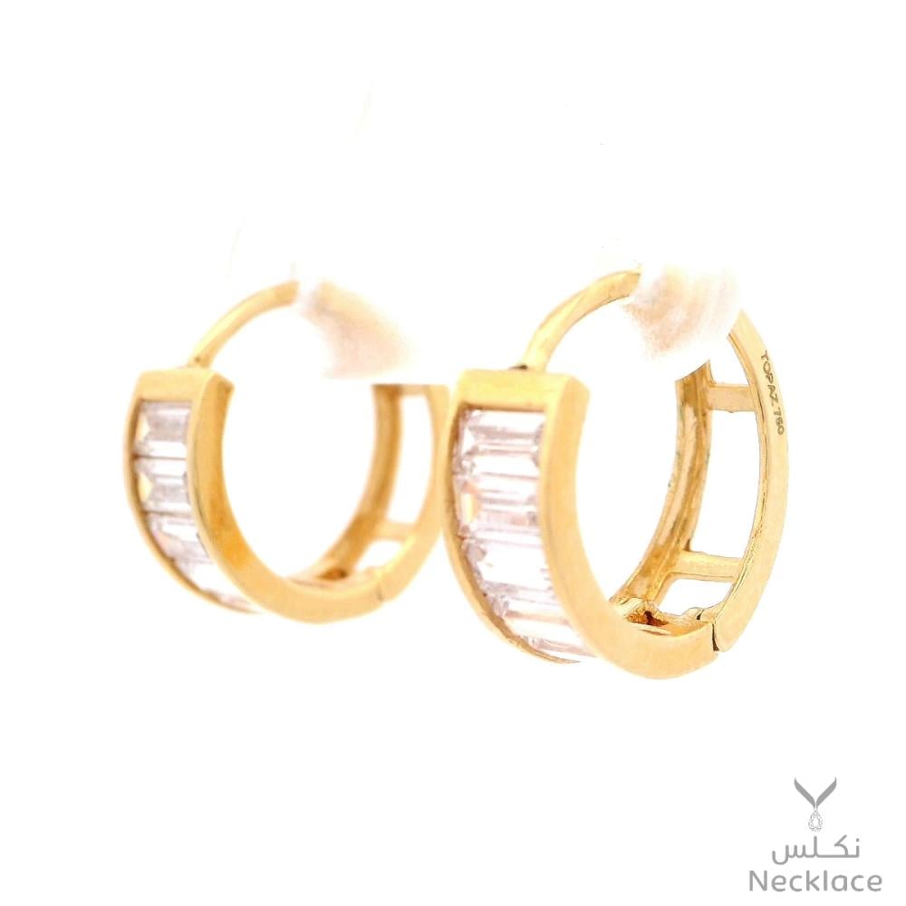 حلق ذهب عيار 18 بتصميم دبلة ومرصع بأحجار باجيت مستطيلة تحفة فنية صغيرة تحمل كل تفاصيل الأناقة والفخامة في ...