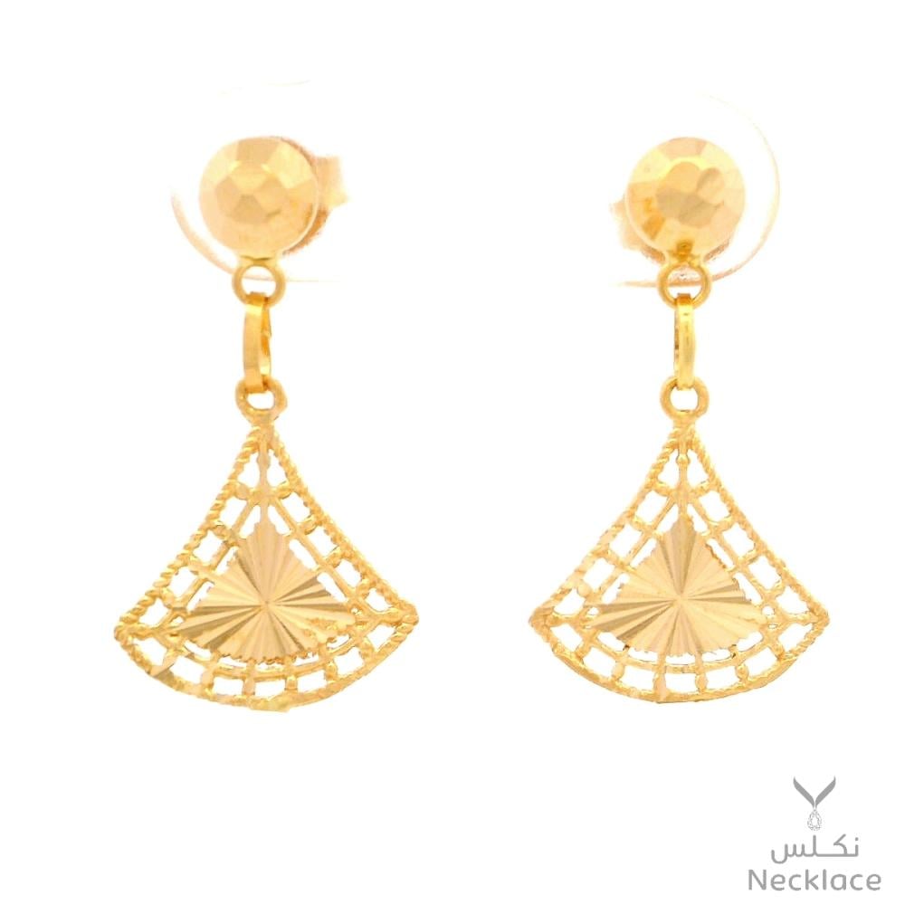 حلق ذهب متدلي عيار 21 بتصميم مروحة مفرغة قراءة المزيد