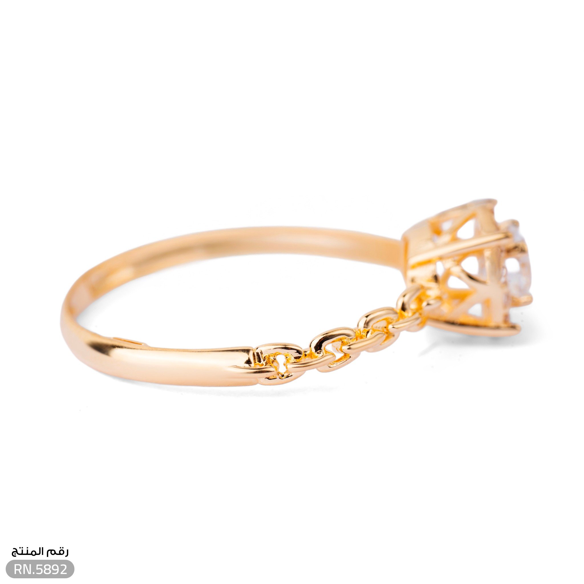 خاتم ذهب عيار 18 ناعم وفص أنيق (RN.5892)