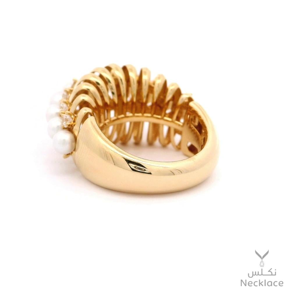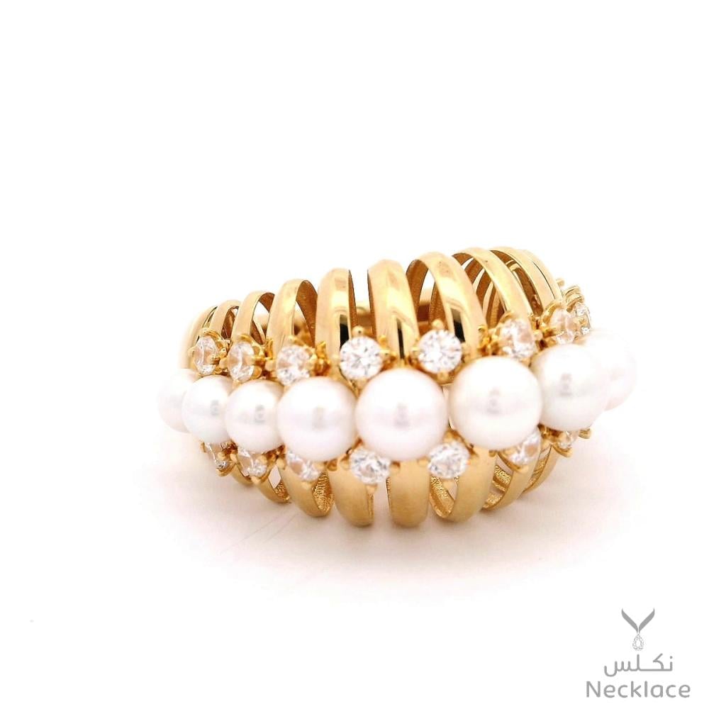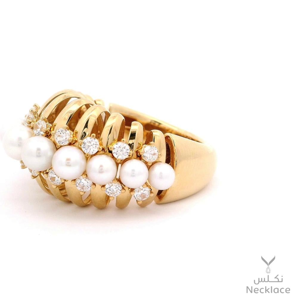 استكشف خاتم ذهب عيار 18 الرائع من نكلس انغمس في الفخامة مع هذا الخاتم الذهبي متعدد الأحجار، مزين بصف من لآلئ مستديرة مصقولة ببراعة. تصميم فريد يجمع بين دفء الذهب وبريق اللؤلؤ ليكمل أناقة إطلالتك في كل المناسبات.✨