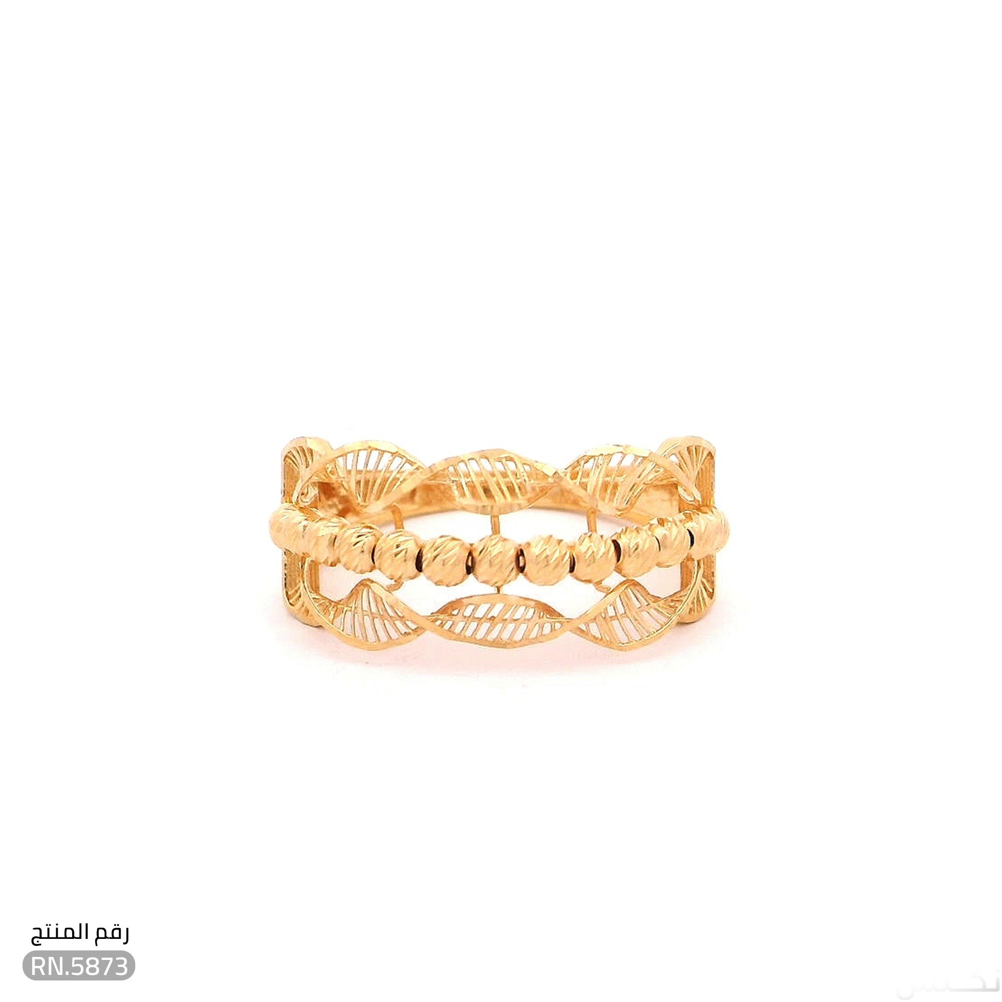 خاتم ذهب عيار 21 تصميم مموج وخرزات ذهبية فاخرة (RN.5873)