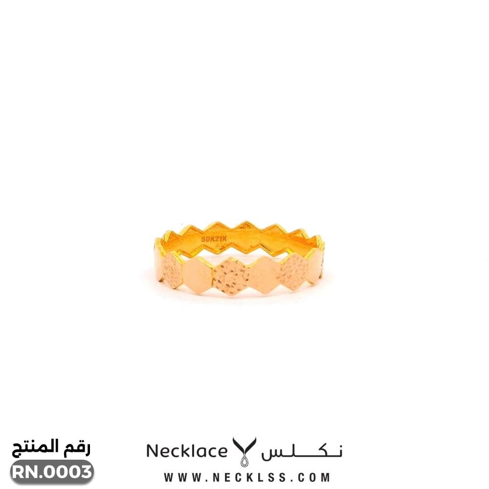 تألقي بإطلالة آسرة ومختلفة مع خاتم ذهب عيار 21 (RN.0003) من متجر نكلس، خاتم ذهب أنيق بتصميم معاصر، مصنوع من الذهب الأصفر عيار 21 . يتميز الخاتم بتصميم فريد من نوعه يتكون من أشكال هندسية سداسية مزخرفة بدقةعلى شكل خلايا النحل ، مما يضفي عليه لمسة من الأناقة والرقي. مثالي للمرأة العصرية التي تبحث عن قطعة مجوهرات مميزة.