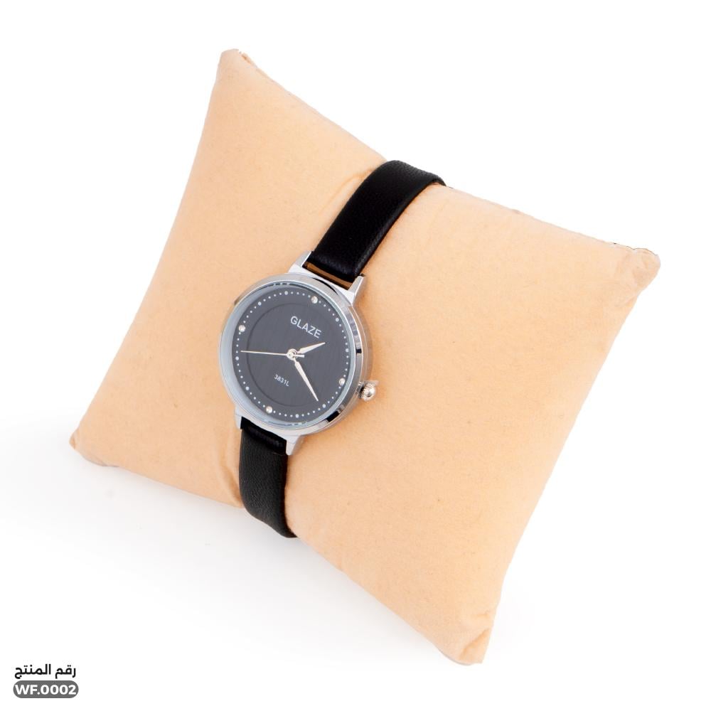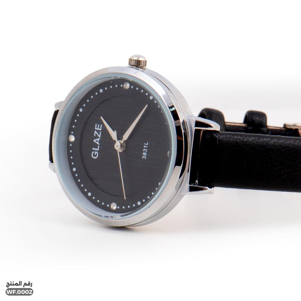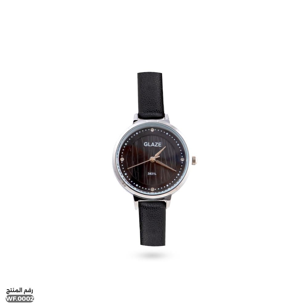 ساعة يد جلاز جلد أسود نسائية (WF.0002)