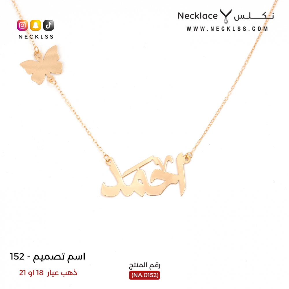 سلسال ذهب مع فراشة اسم أحمد (NA.0152)