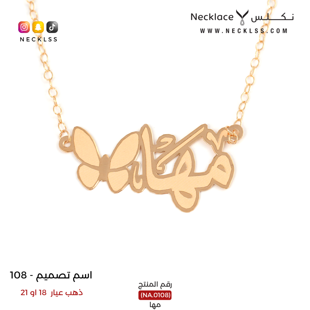 سلسال ذهب فراشة اسم مها (NA.0108)
