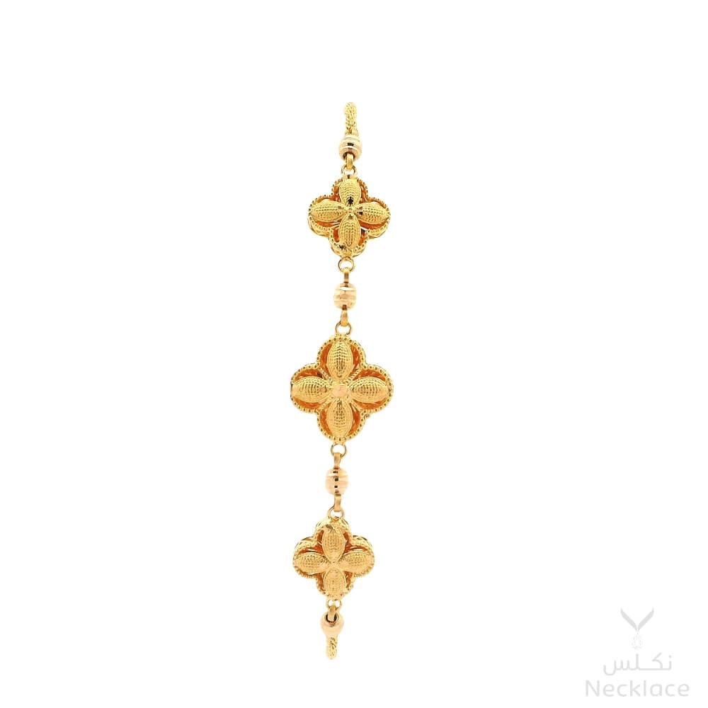 بتصميم فريد، تتميز بسلسلة ذهبية خفيفة مزينة بثلاث زهور ذهبية متشابكة بأسلوب فاخر. مثالية لـ الإطلالة اليومية أو المناسبات الخاصة.