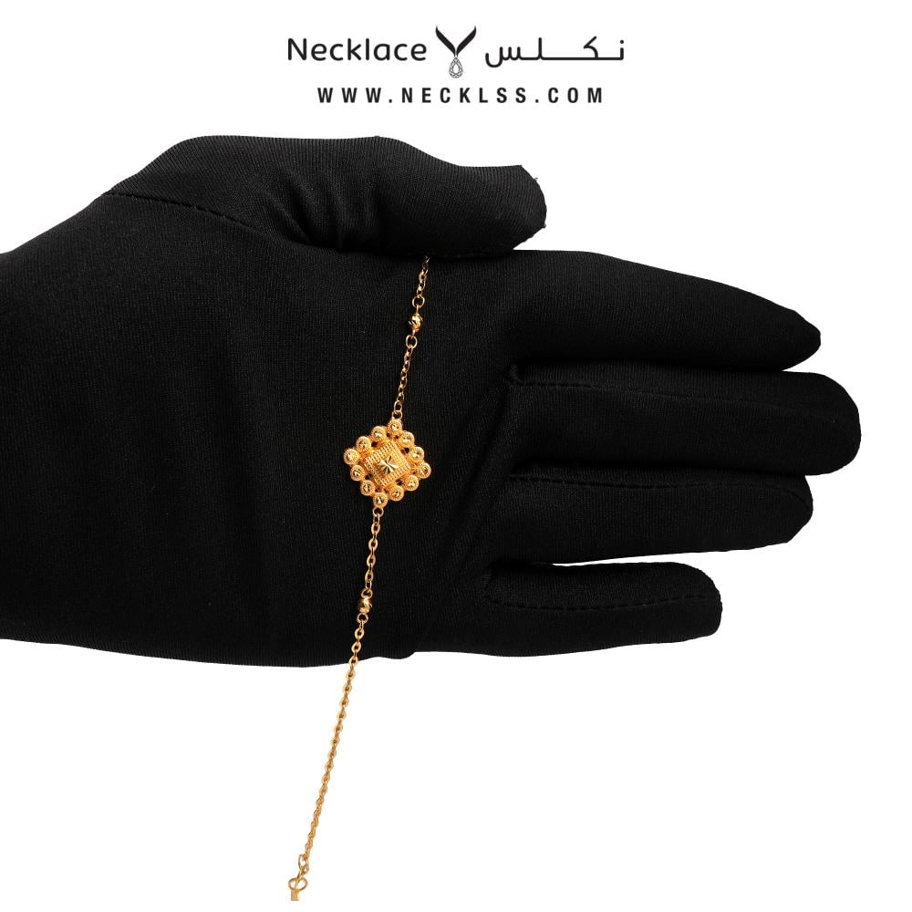 بتصميم راقي ذهبي على شكل معين تحاط به كرات ذهبية مع نقشات متميزة، مثالية كـ هَدِيَّة ذَهَبِيَّة للمناسبات الخاصة أو للإطلالة اليومية.