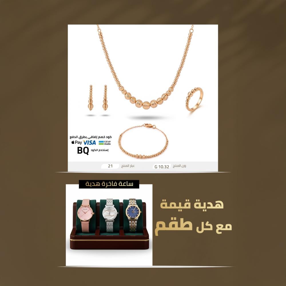 المواصفات: 🎀 ذهب 21 قيراط.الوزن التقريبي: 10.32جرامطول القلادة : 43 سمطول الاسوارة : 18 سممقاس الخاتم: الامريكي: 8 ، الهندي: 17