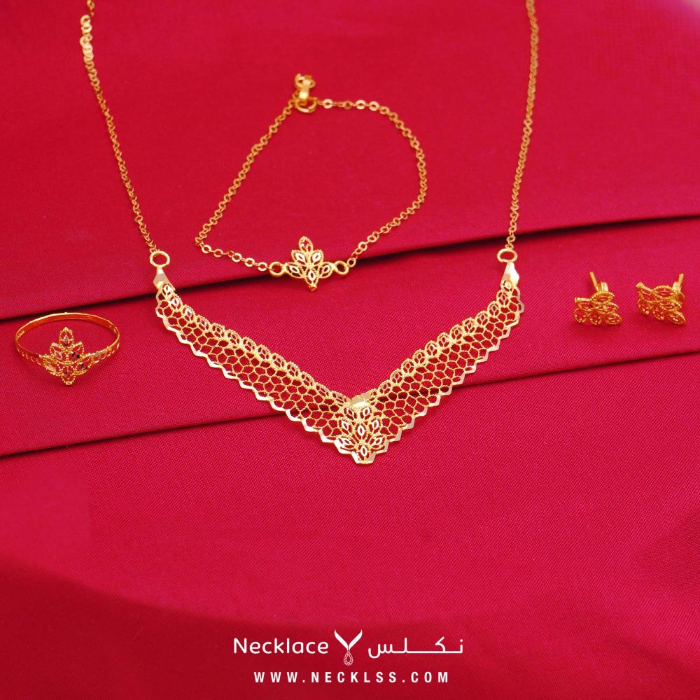 طقم من الذهب الأصفر اللامع عيار 21 / 21K . في نكلس للذهب و المجوهرات نهتم بأدق التفاصيل و نواكب الموضة الأشكال المطلوبة ونوفرها لكم على طبق من ذهب.