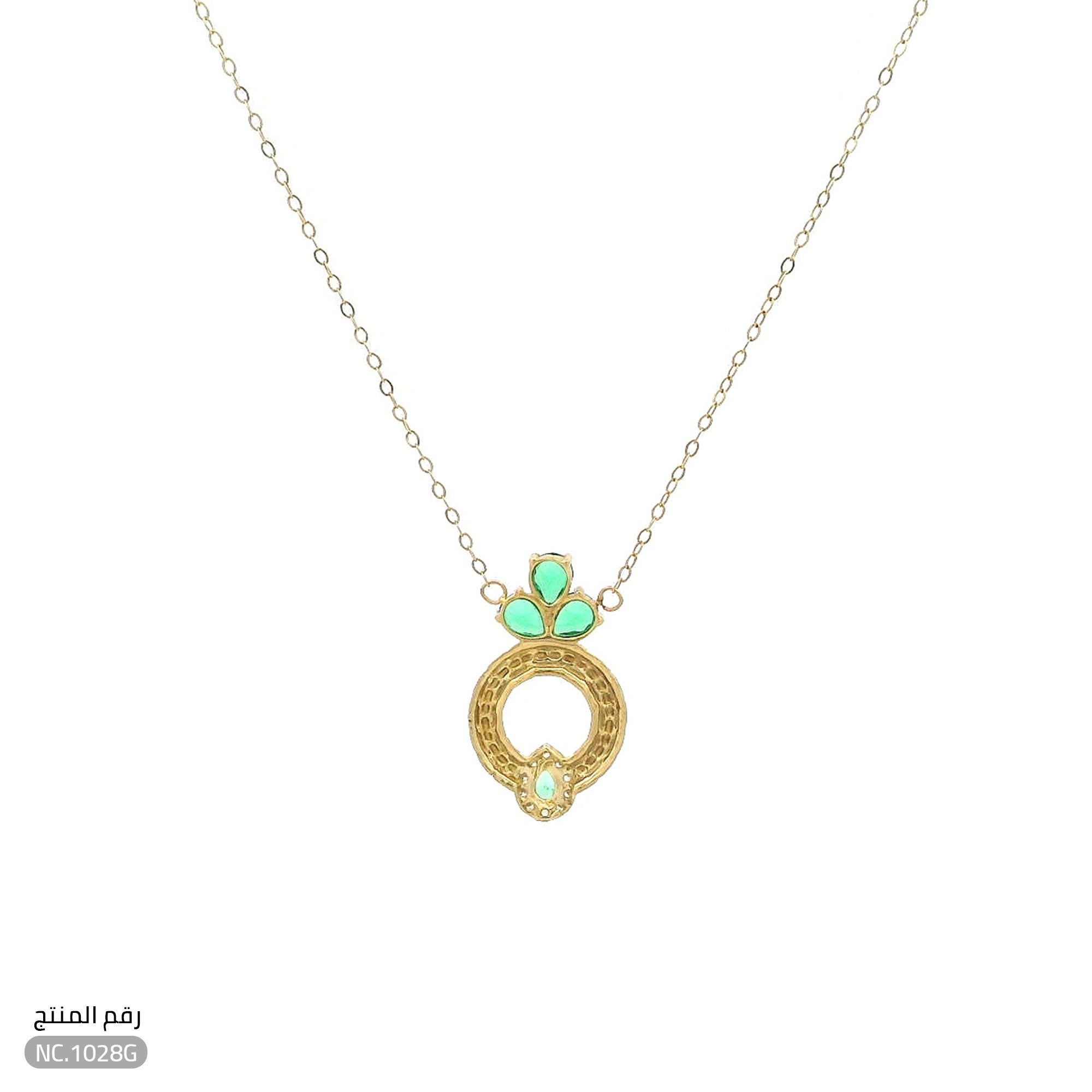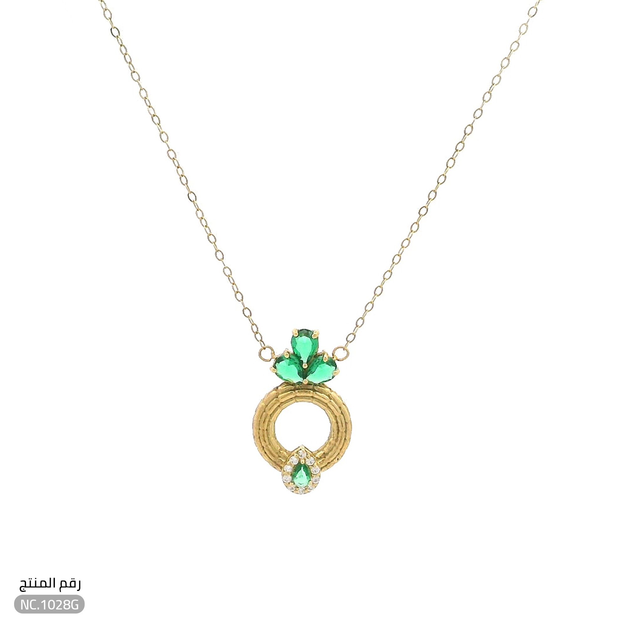 قلادة ذهب عيار 18 تصميم دائري وفصوص خضراء فخمة (NC.1028G)