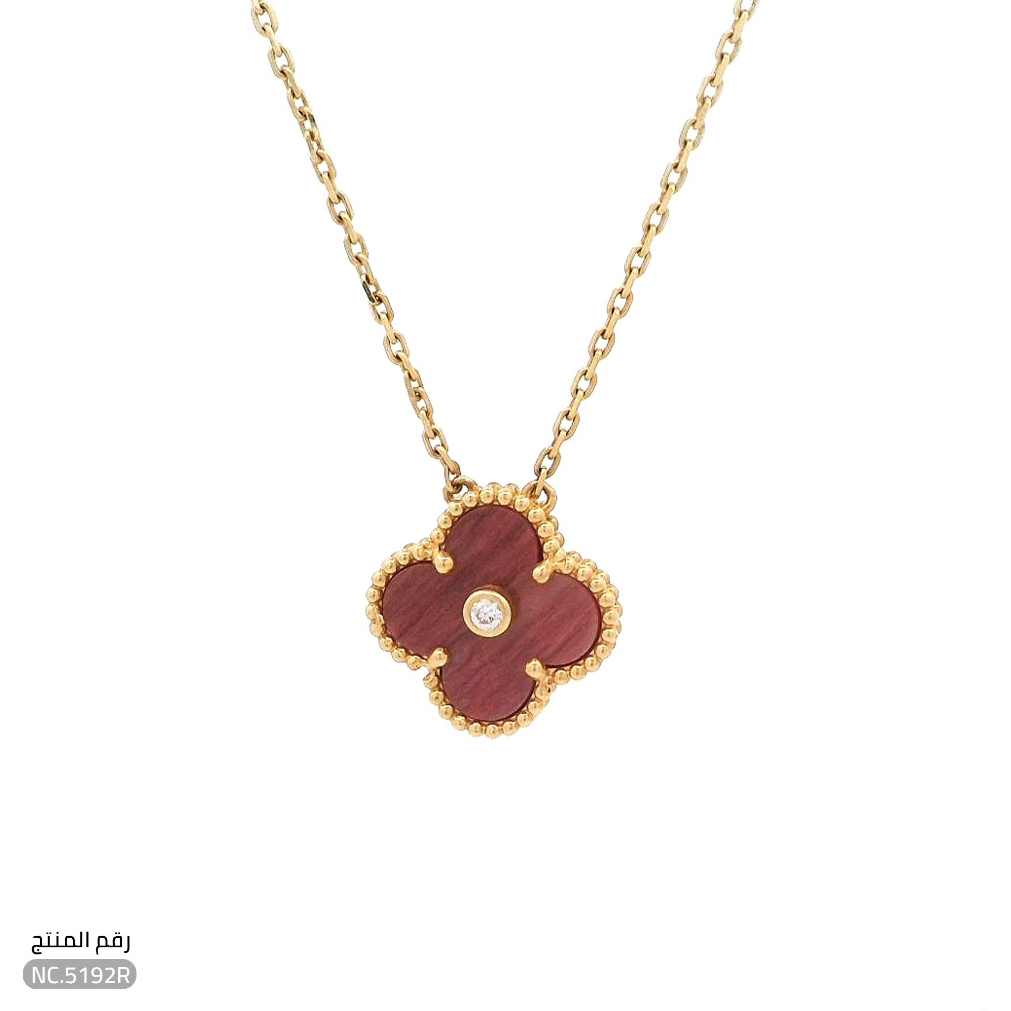 قلادة ذهب عيار 18 تصميم زهرة لون عنابي أنيق (NC.5192R)