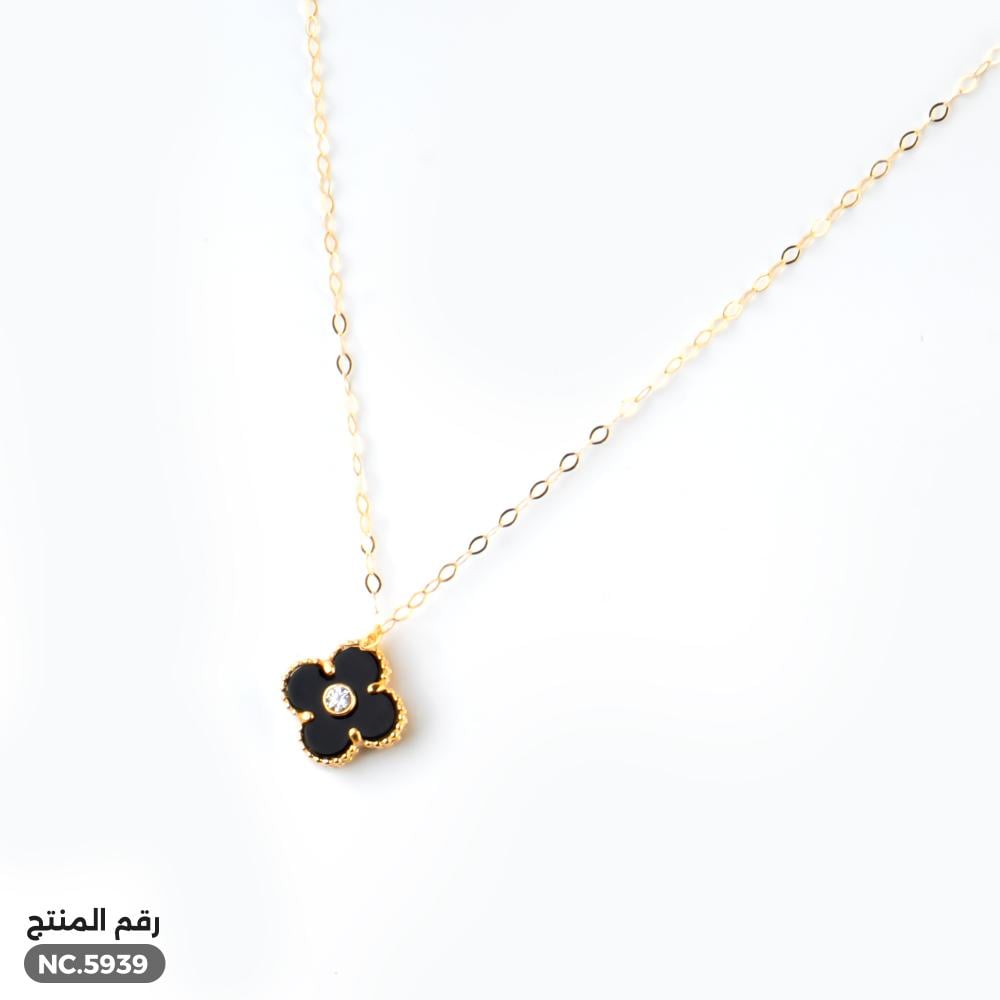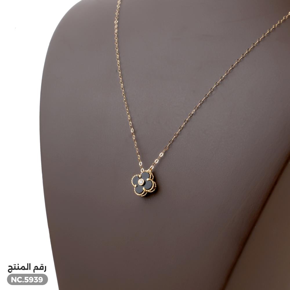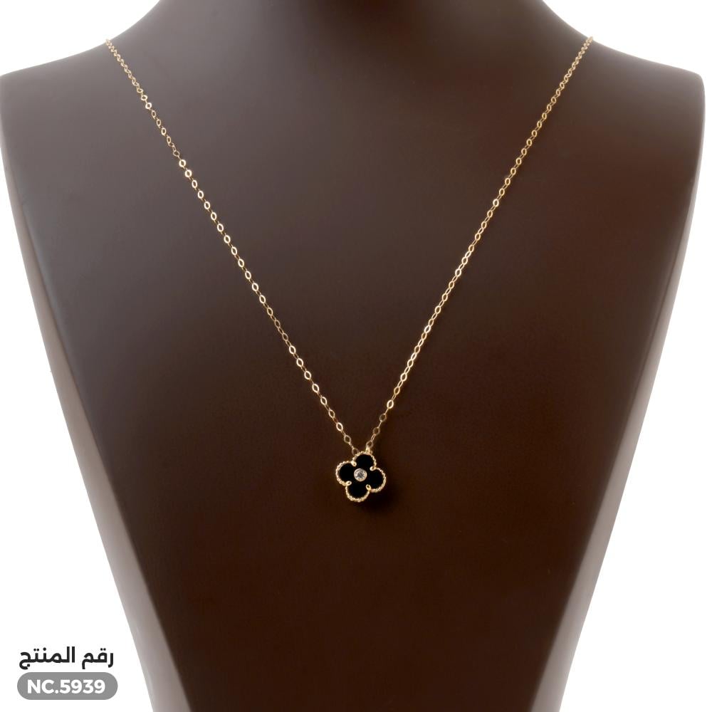 قلادة ذهب عيار 18 بتعليقة سوداء أنيقة (NC.5939)