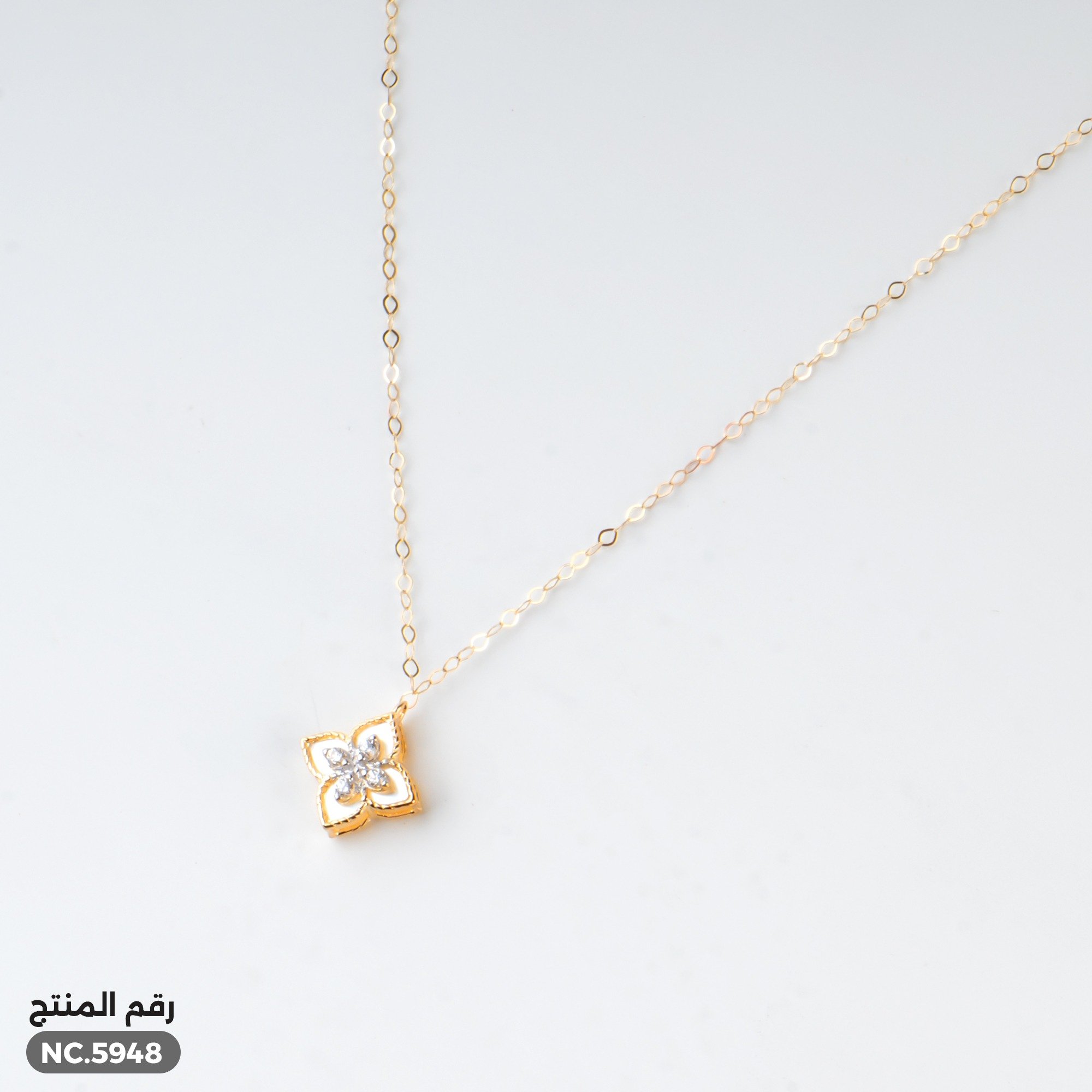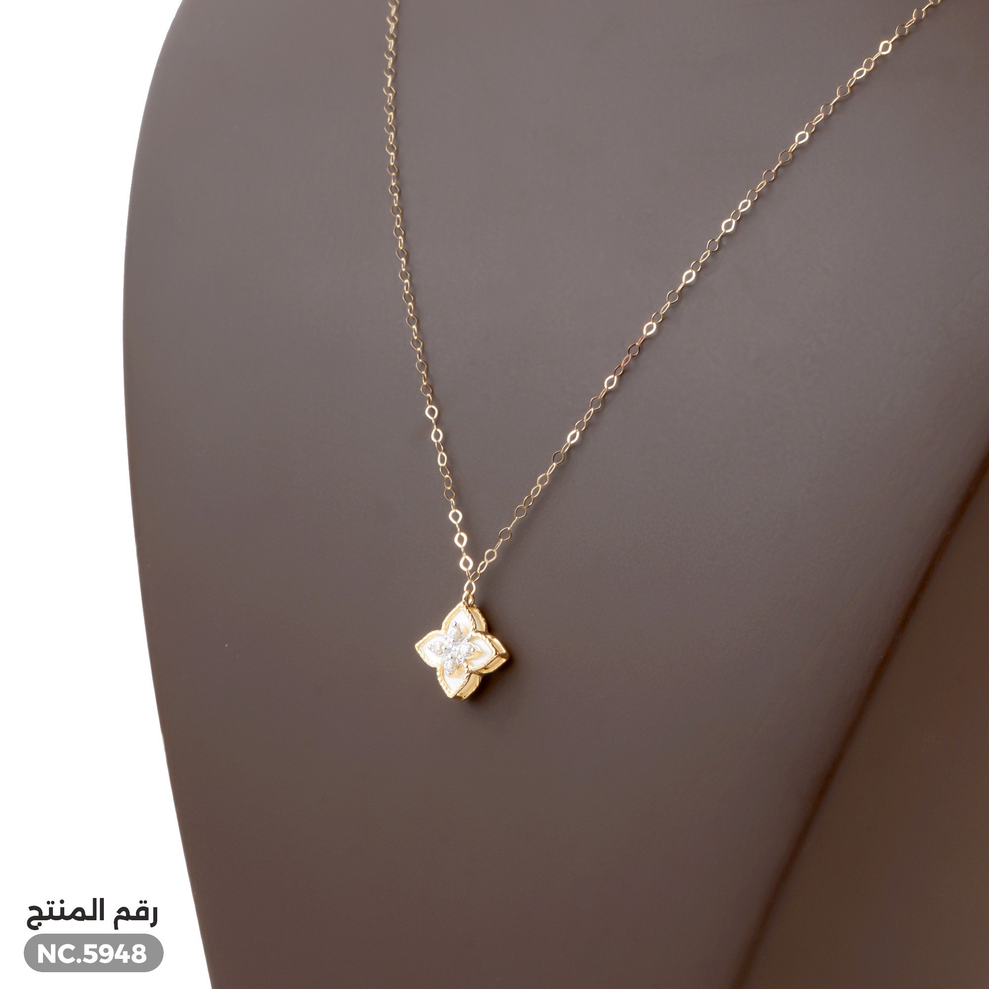 قلادة ذهب عيار 18 تصميم زهرة بلون أبيض أنيق (NC.5948)