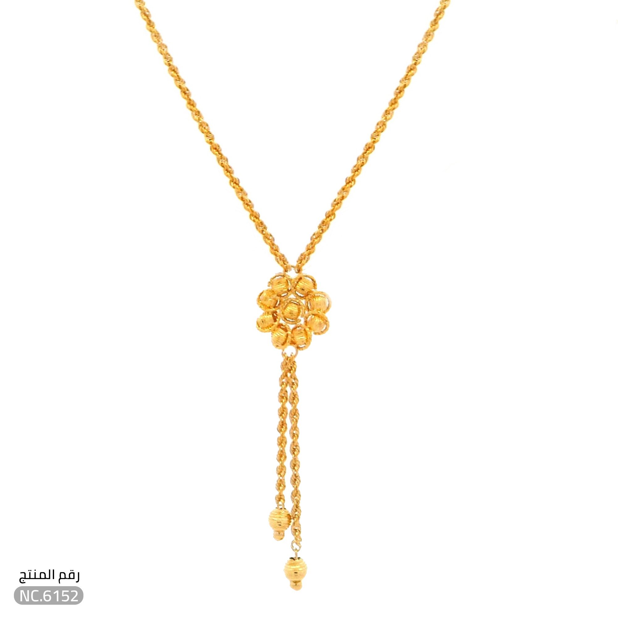 قلادة ذهب عيار 21 تصميم زهرة وسلسال مبروم فخم (NC.6152)