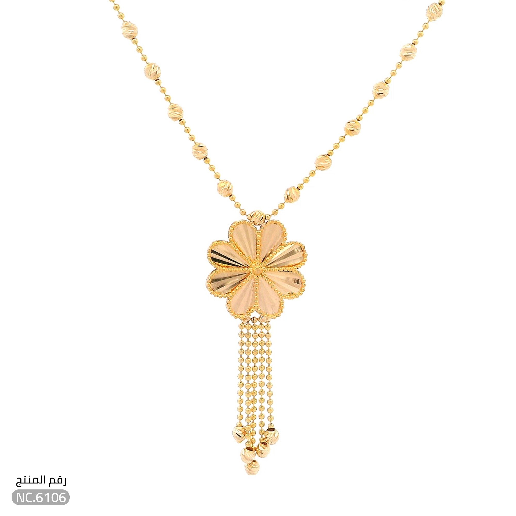 قلادة ذهب عيار 21 تصميم زهرة بخرزات متدلية فاخرة (NC.6106)
