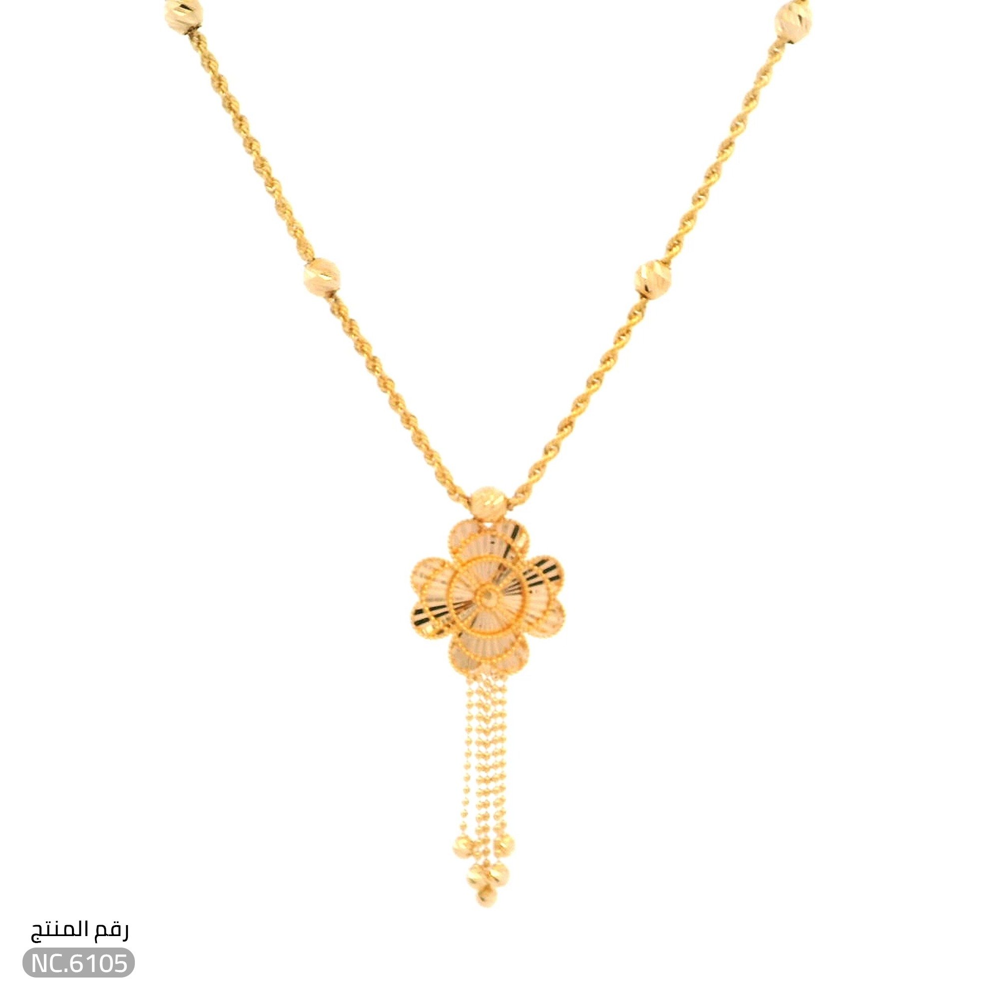 قلادة ذهب عيار 21 تصميم زهرة بخطوط سوداء فخمة(NC.6105)