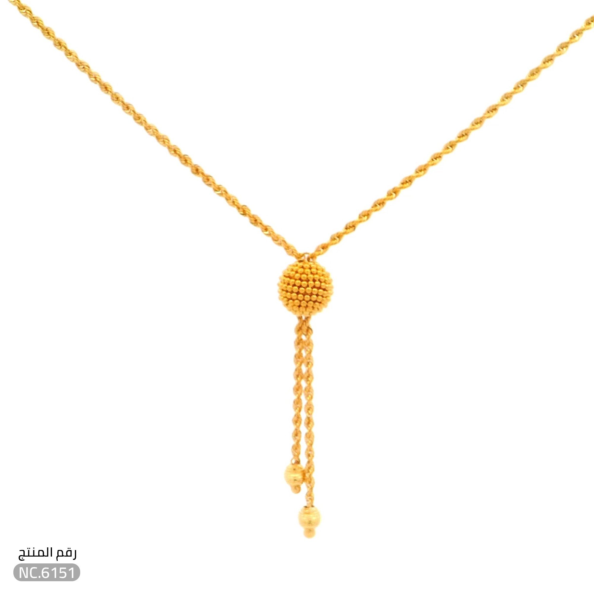 قلادة ذهب عيار 21 تصميم كرة ذهبية وسلسال مبروم فاخر (NC.6151)