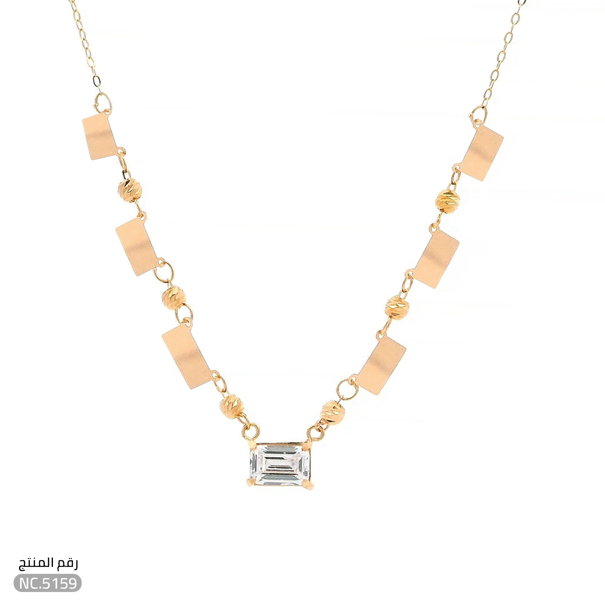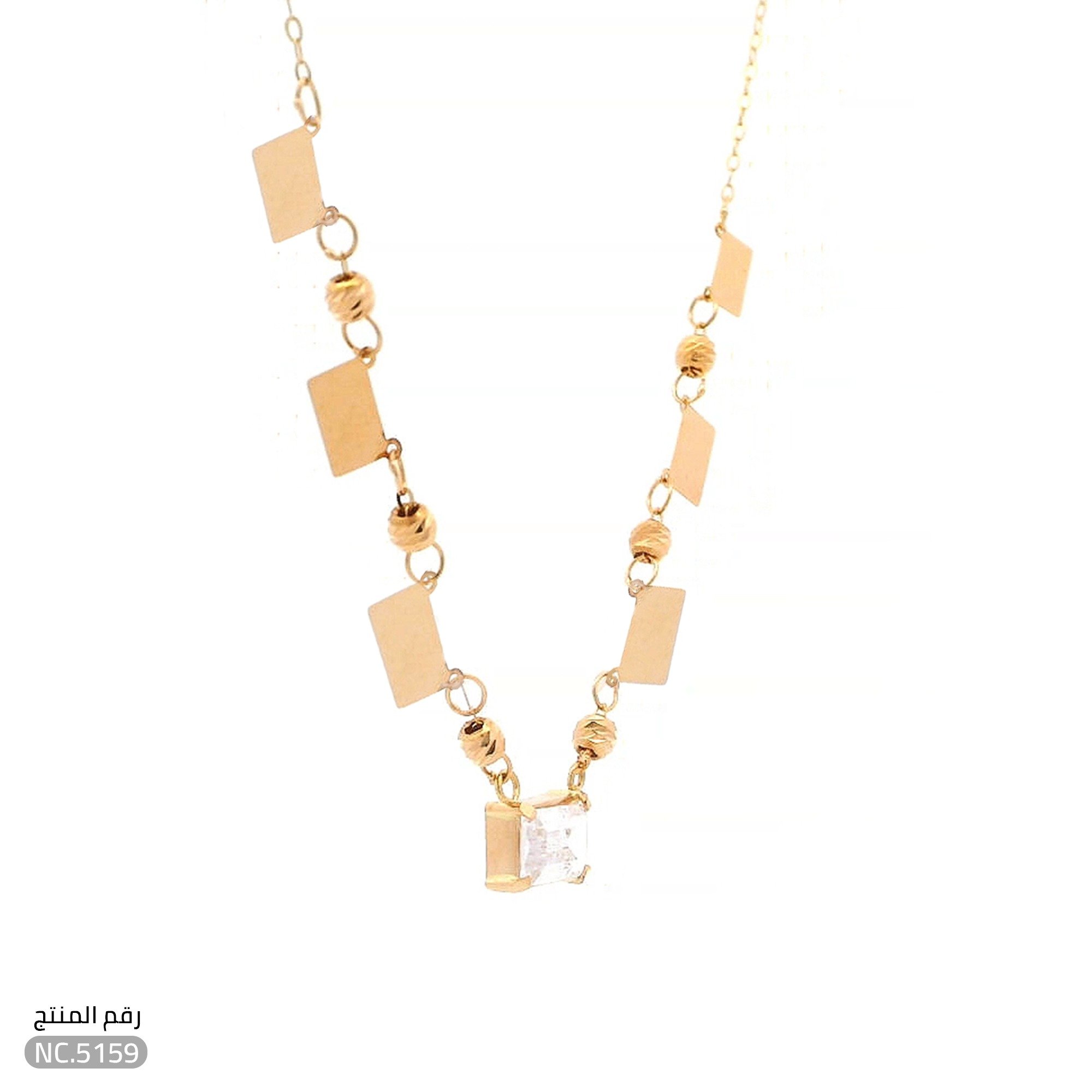 قلادة ذهب عيار 21 بفص لامع وكرات ذهبية فاخرة (NC.5159)