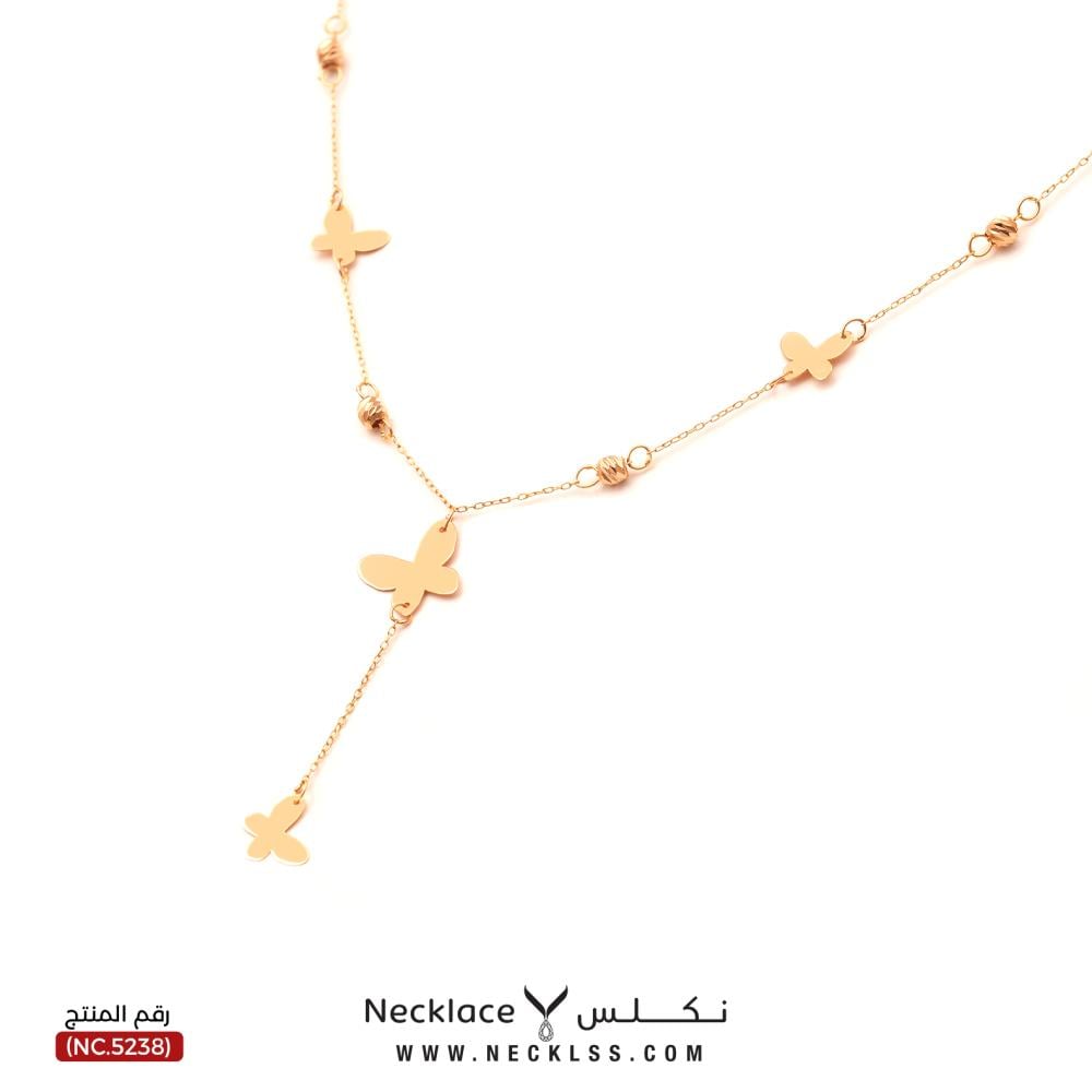 من متجر نِكلِس قلادة ذهبية ناعمة تتكوّن من سلسلة رقيقة تتوزّع عليها فراشات صغيرة بتصميم متناغم، وفي المنتصف تتدلّى فراشة إضافية تمنح حركة أنيقة حول العنق. التصميم يجمع بين الانسيابية والرمزية، ليمنحك إطلالة أنثوية تحمل طابعًا عصريًا مميزًا.