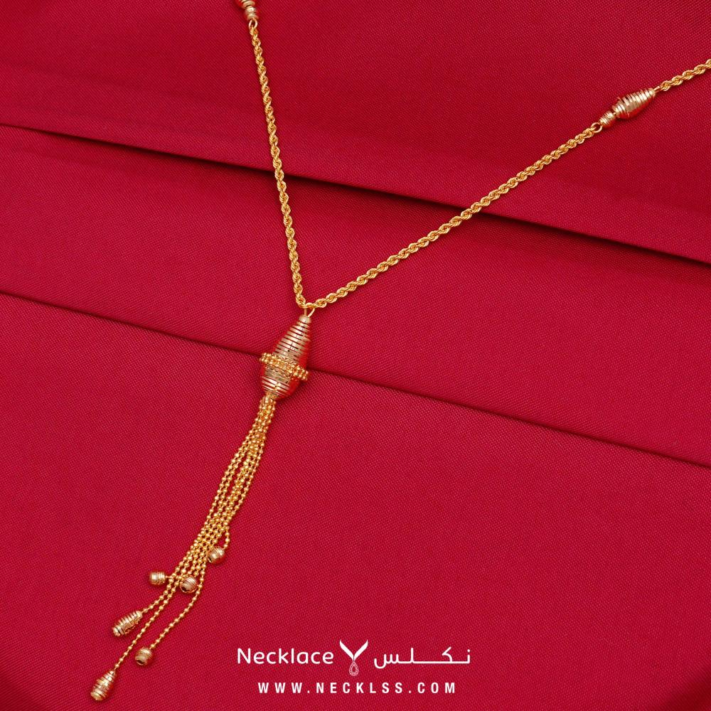 قلادة ذهب عيار 21 من متجر نكلس: تتميز بتصميم متدلي أنيق يجمع بين الرقة والجمال المميز. القلادة مزينة بـ عنصر ذهبي مزخرف وتدلية طويلة بأسلوب متدرج تضيف لمسة من التأ...