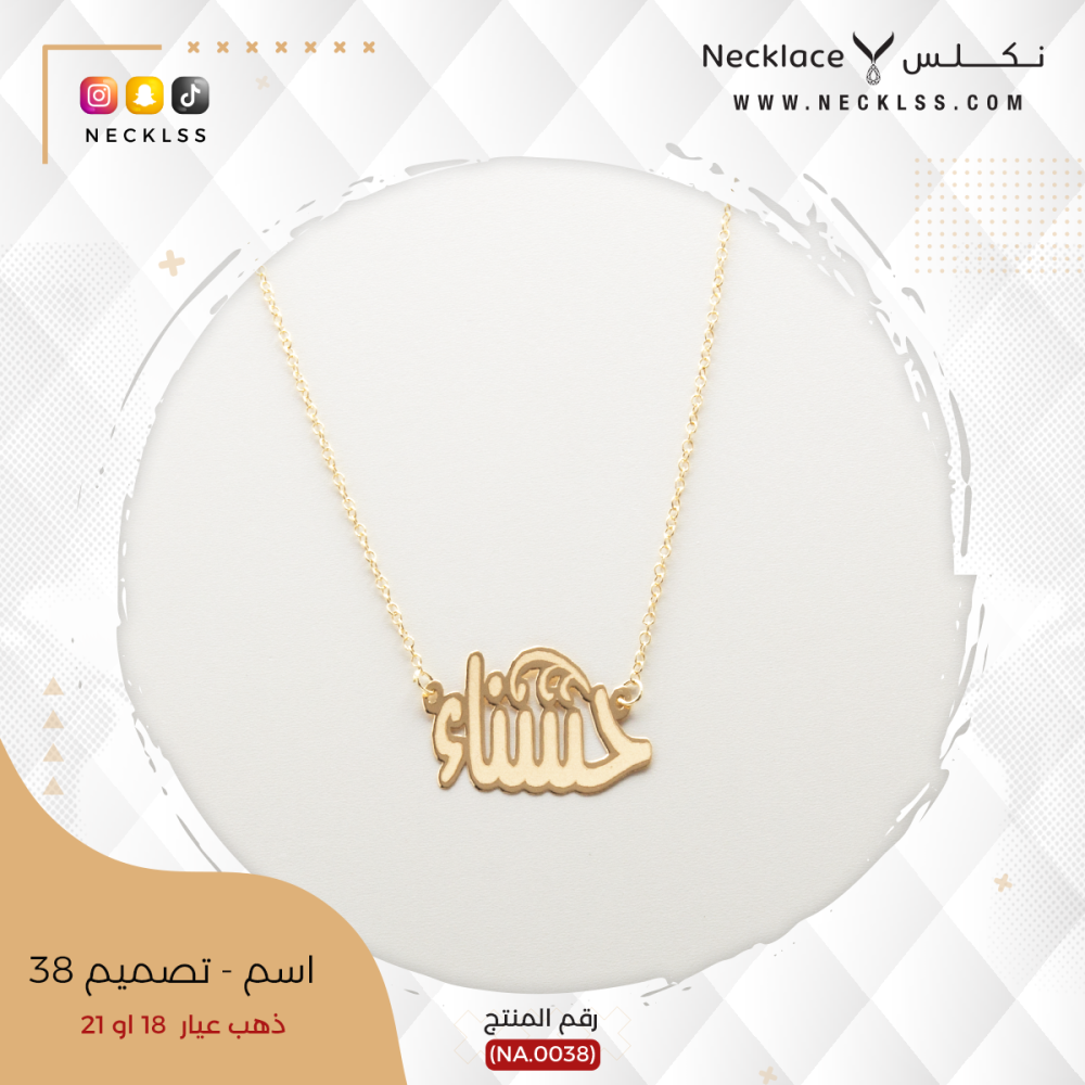 Hasna chose to design a gold chain that bears her name in a way that makes her love and relate to him more, and you also deserve to own a distinctive gold chain bearing your name, choose the design you like and we will make it for you with the highest quality.